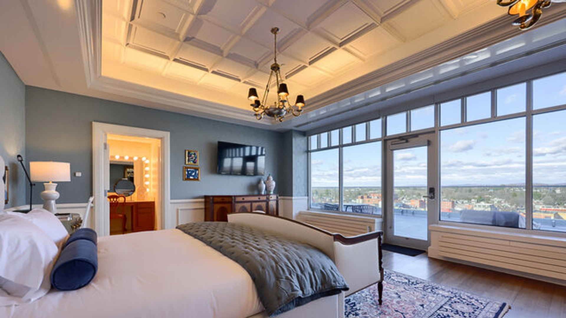 Stay in luxury suites with a stunning panoramic 6th-floor view of Main Street in Ephrata - featured in Hallmark movies!